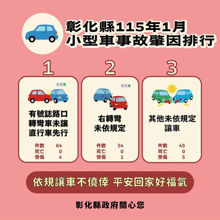 【交通安全】彰化縣115年1月道路交通事故死傷累計2,719人